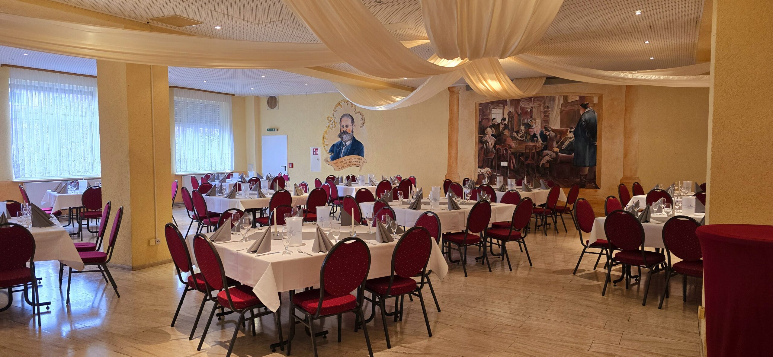 Unser Reutersaal bietet Platz für bis zu 110 Personen. Egal ob Seminare, Familienfeiern oder Firmenevents, der Reutersaal ist für jede Veranstaltung die passende Location. Von Leinwand und Beamer über Beschallungsanlage, bis hin zum DJ - wir gehen flexibel auf Ihre Wünsche ein.